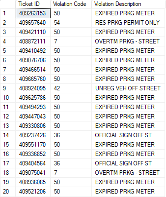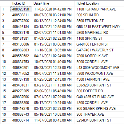 For best practices, we inserted into two new tables: Locations and Violations. Leaving TicketLocations and TicketViolations as our original backup tables.